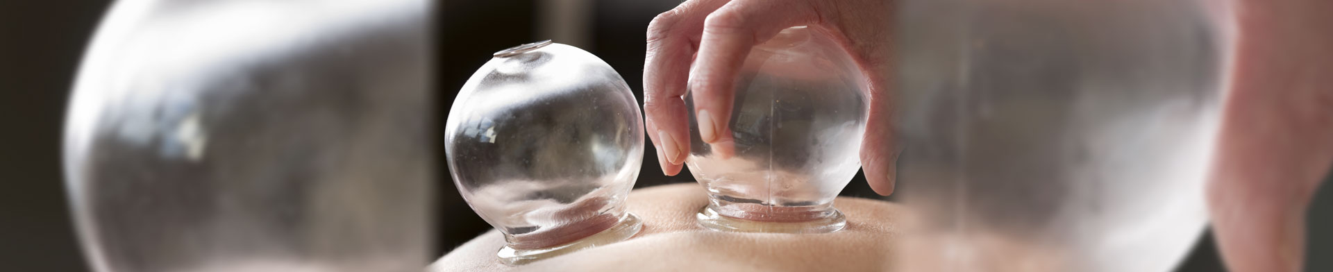 - Aufsetzen von Schröpfköpfen auf die Reflexzonen am Rücken